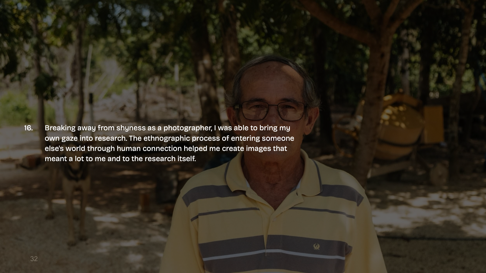 - Breaking away from shyness as a photographer, I was able to bring my own gaze into research. The ethnographic process of entering someone else’s world through human connection helped me create images that meant a lot to me and to the research itself.