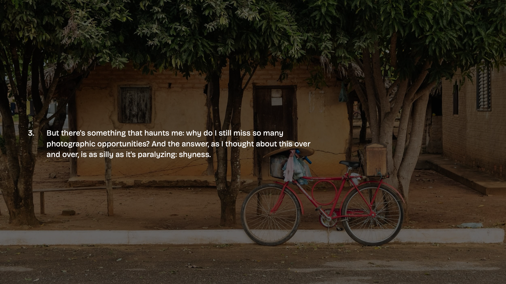 - But there’s something that haunts me: why do I still miss so many photographic opportunities? And the answer, as I thought about this over and over, is as silly as it’s paralyzing: shyness.